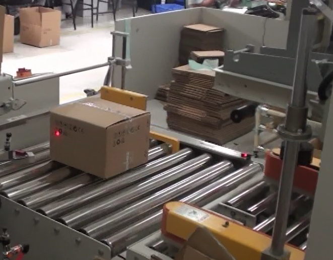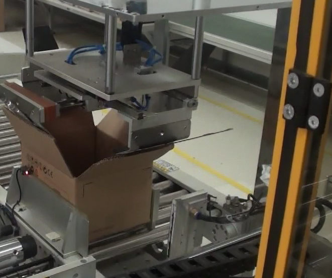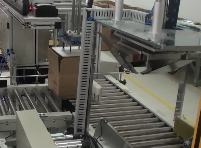 4.流水線組成:整條流水線由自動開箱機——自動貼標機——自動裝隔板——物料自動抓取——產品自動裝箱——全自動折蓋封箱機——全自動四角邊封機組成,實現不同的子產品在同一條流水線完成裝箱。