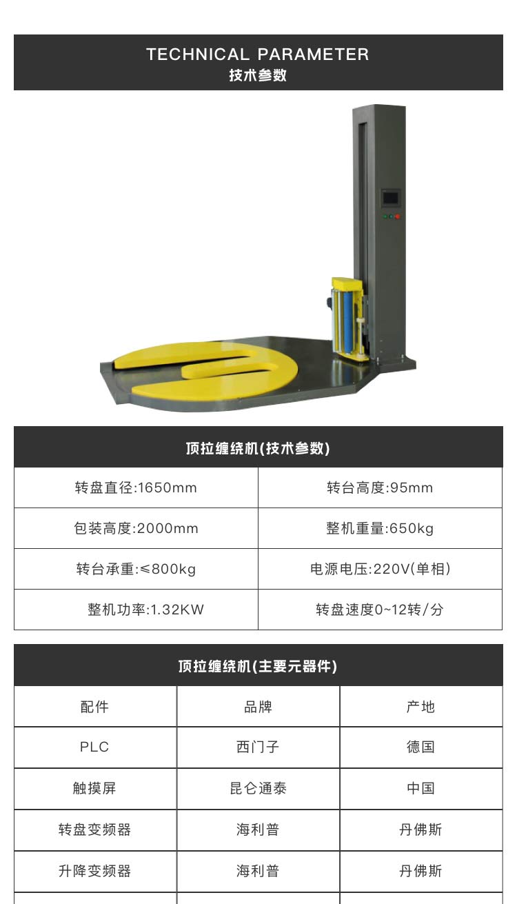 介紹:主要性能 PLC可編程控制,纏繞程序可選,各種參數(shù)可調(diào), 光電開關(guān)自動感測貨物高度 預(yù)拉伸自動送膜機(jī)構(gòu) 轉(zhuǎn)盤緩啟動、緩?fù)V?,自動?fù)位 頂部及底部纏繞數(shù)分別單獨(dú)控制 自動、手動可切換,幾乎無需日常維護(hù)