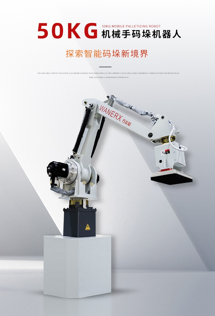介紹:小型機械手碼垛機是一種智能化包裝設備,通常由機械手臂、控制系統、傳感器和夾具組成。它可以根據預設程序自動抓取、碼垛和放置不同形狀和尺寸的產品,實現包裝操作。這種機器人碼垛機適用于小規模生產線或空間有限的場所,能夠提高生產效率,降低人力成本,并確保包裝質量的一致性和穩定性。由于其靈活性和智能化特點,小型機械手碼垛機在多個行業,如紙箱、食品、醫藥等領域得到廣泛應用。