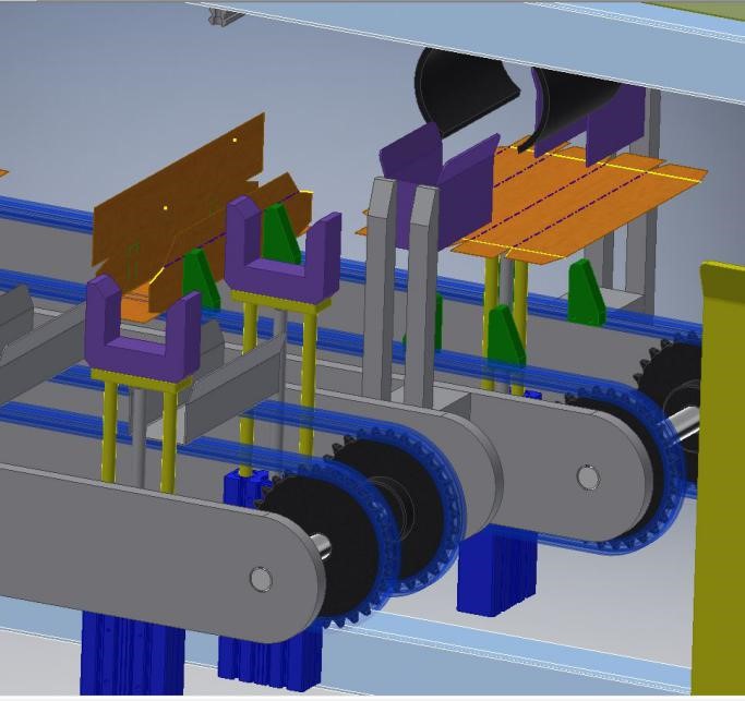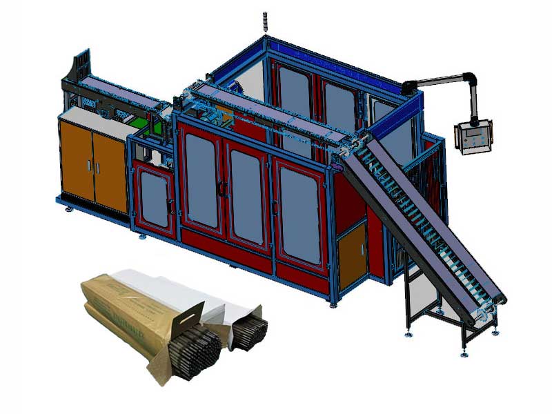 D:自動移栽抓取落盒成型一體化,精度高,減少對紙盒要求。頂升移載抓取:數根的物料落入存儲整形輸送機工位進行整形,使之物料均勻整齊,輸送至頂升工位,將物料頂起,方便抓取。